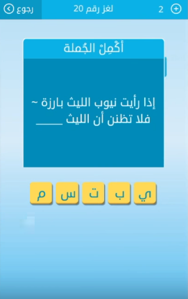حل لغز اذا رايت نيوب الليث بارزة فلا تظنن ان الليت من لعبة رشفة لغز رقم 20 للمجموعة الثالثة صقور الإبدآع