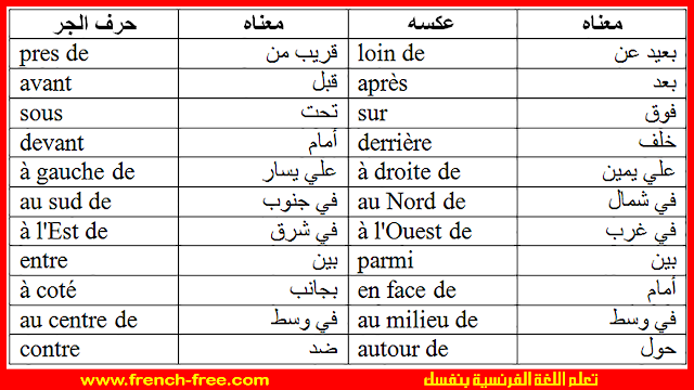 مجموعة ضخمة من الحروف وكلمات دلالية في اللغة الفرنسية تستعمل بكثرة مكتوبة مع الترجمة أضدادها و إستخداماتها في جمل أيضا تعلم الفرنسية