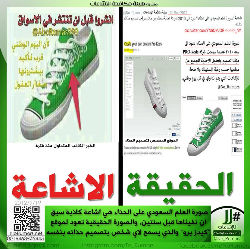 هيئة مكافحة الإشاعات No Twitter اشاعة العلم السعودي على الحذاء تعود من جديد والصورة من موقع قديم لشركة تسمح لك بتصميم حذائك بنفسك اليوم الوطني Http T Co Zyjktpieyq