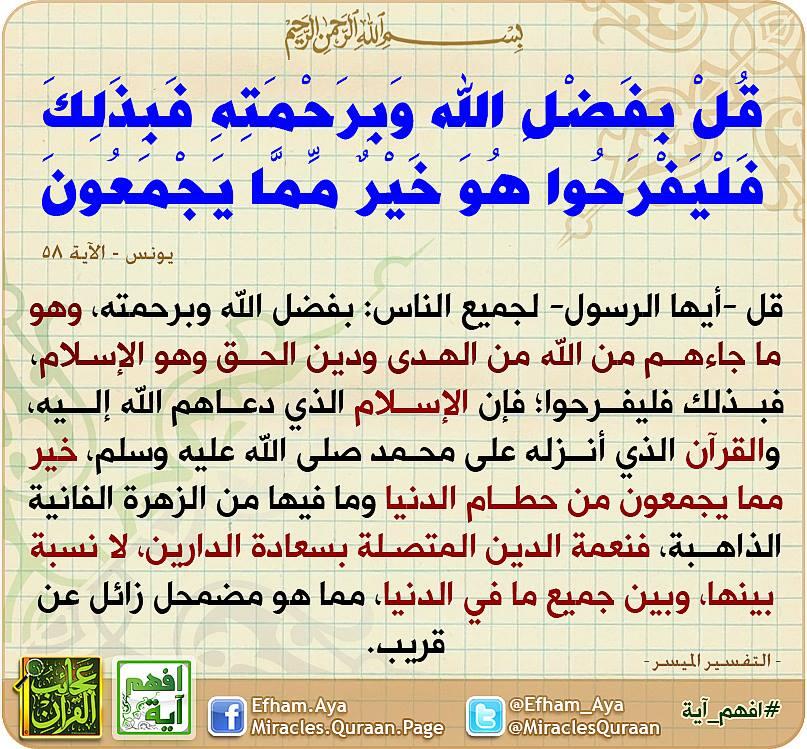 افهم آية Pa Twitter قل بفضل الله وبرحمته فبذلك فليفرحوا هو خير مما يجمعون افهم آية قرآن Http T Co Bgdsae1fkk