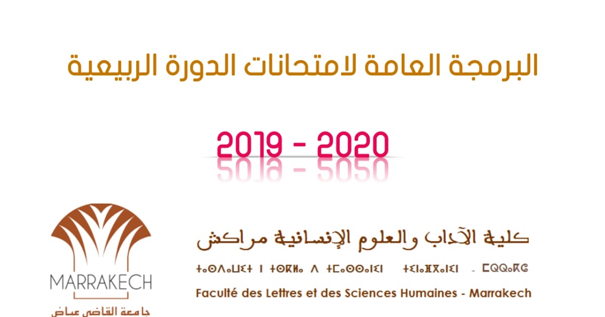 البرمجة العامة لامتحانات الدورة الربيعية كلية الاداب جامعة القاضي عياض مراكش جامعة القاضي عياض