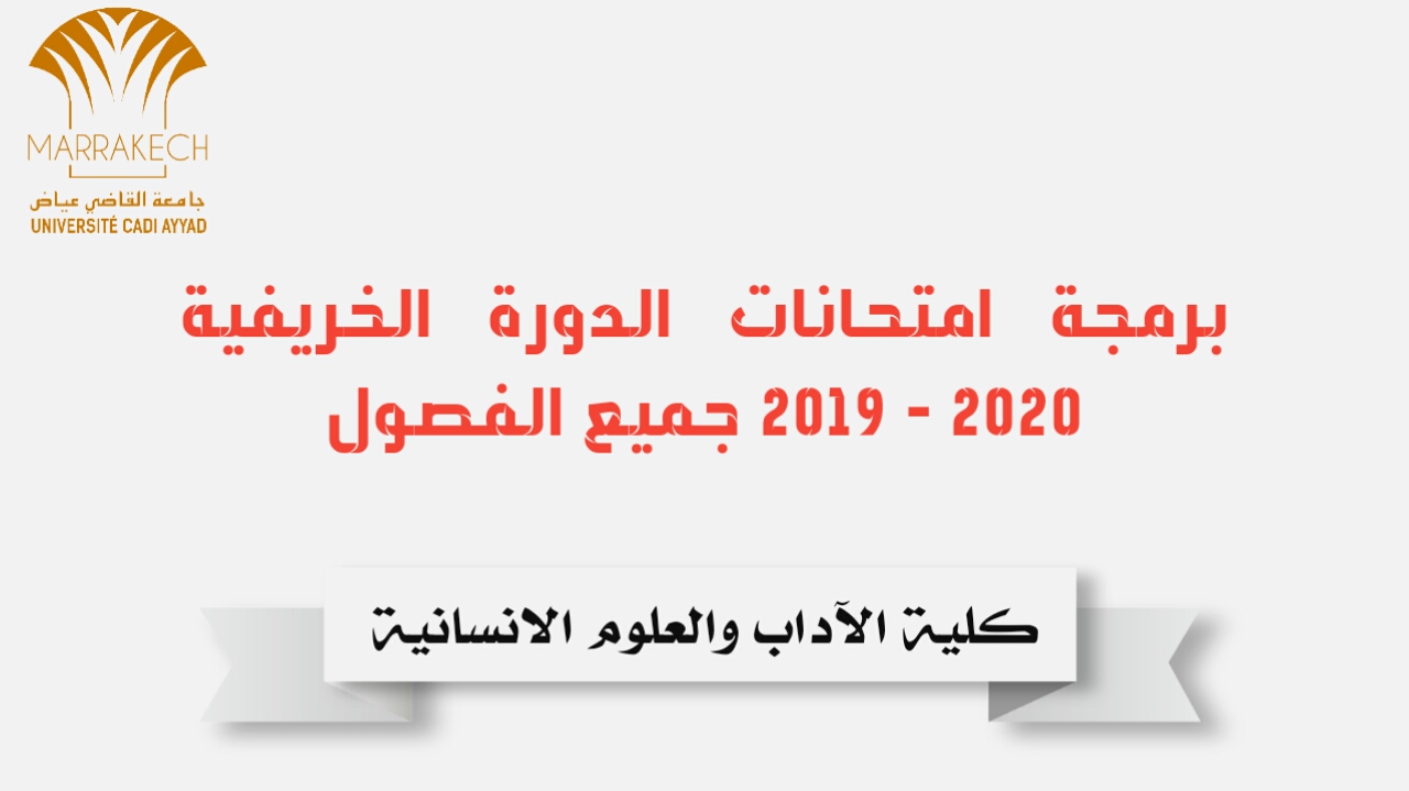 برمجة امتحانات الدورة الخريفية 2019 2020 كلية الاداب والعلوم الانسانية جميع الفصول جامعة القاضي عياض