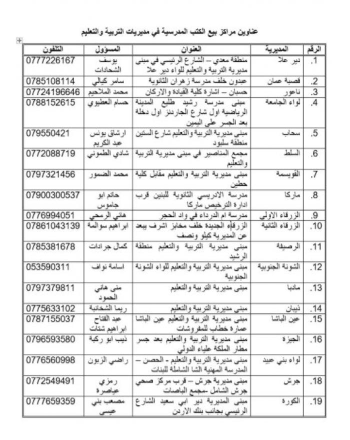 جداول اماكن بيع الكتب المدرسية المدينة نيوز