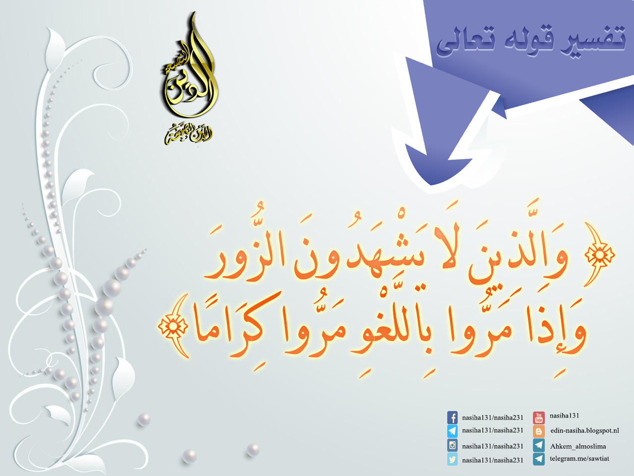 الدين النصحية من صفات المؤمنبن و لا يشهدون الزور