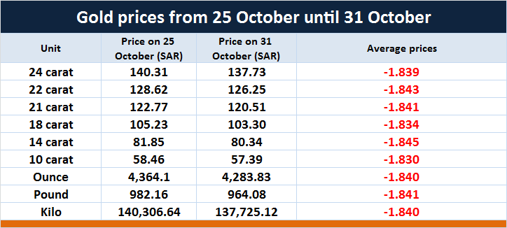 Gold Prices Down In Saudi Arabia Last Week Mubasher Info