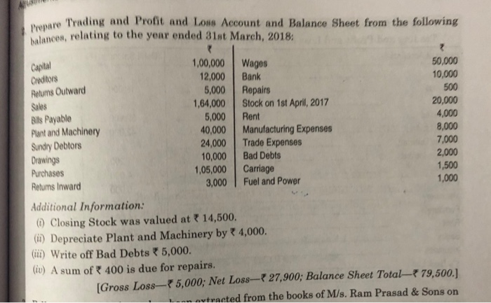 Prepare Trading And Profit And Loss Account And Balance Sheet From