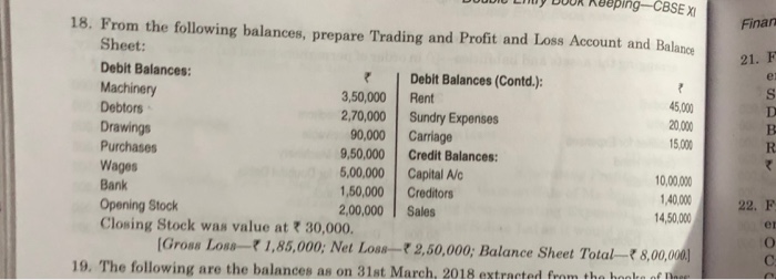 Solved Weping Cbsexifinan 18 From The Following Balances Chegg Com
